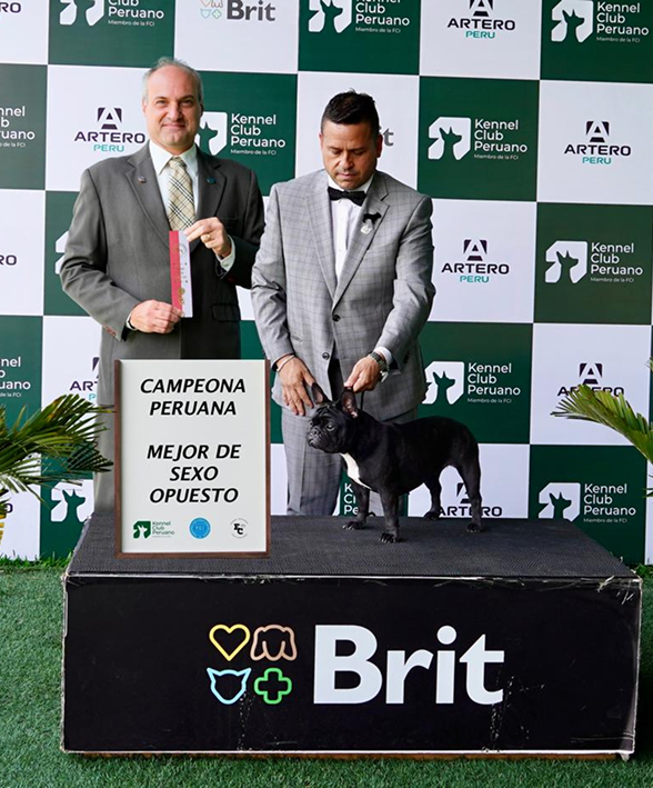 Uno de los momentos más memorables fue cuando un cliente, inicialmente reacio a participar en concursos, decidió probar suerte con su cachorro de French Bull Perú. Este perro no solo comenzó a ganar competencias nacionales, sino que se consagró como Joven Campeón, Campeón Peruano, campeón peruano y Gran Campeón peruano. Muchas veces best in show y mejor de raza  El punto culminante llegó en Uruguay, en una competencia con más de 50 Bulldogs Franceses —incluyendo campeones mundiales— donde nuestro ejemplar se llevó el primer lugar y sumó puntos para el campeonato uruguayo.